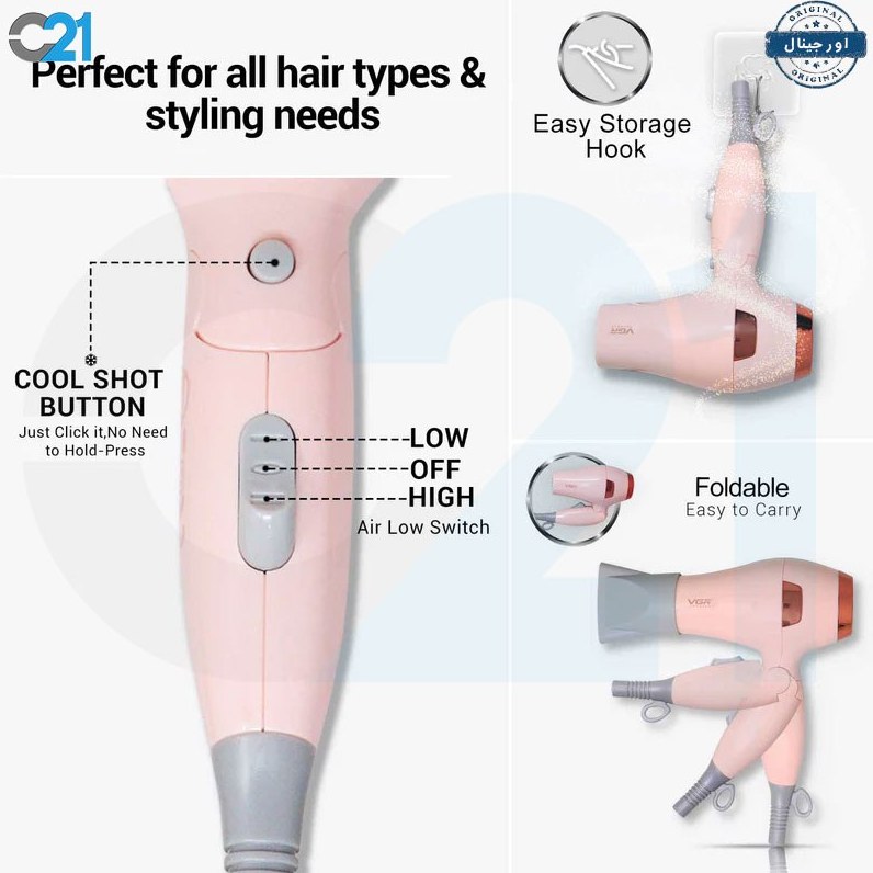 دو سرعته/دارای قابلیت هوای سرد/دارای دسته تاشو/دارای قابلیت محافظت در برابر گرمایش بیش از حد/طول کابل 1.8 متر